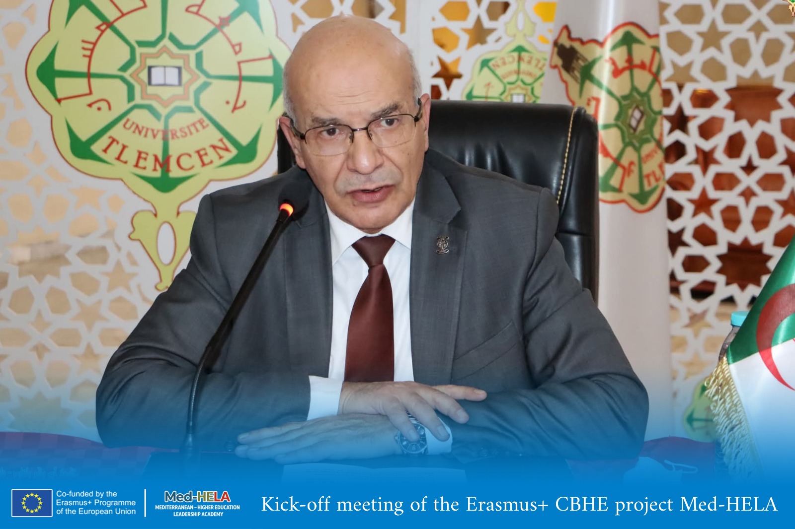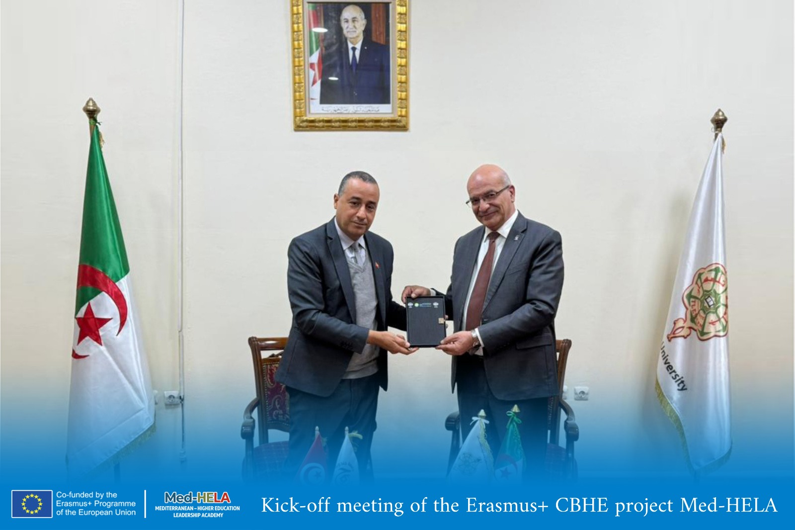 تم الافتتاح الرسمي لمشروع إيراسموس+ KA2 CBHE: MED.HELA (أكاديمية القيادة في التعليم العالي بمنطقة البحر الأبيض المتوسط) بجامعة تلمسان يوم 20 جانفي 2026، جزيل الشكر إلى السيد مدير جامعة تلمسان الأستاذ مراد مغاشو، وإلى نائب مدير الجامعة للعلاقات الخارجية الأستاذ علي حمزة الشريف على حفاوة الاستقبال وكرم الضيافة خلال هذا الحدث الهام.