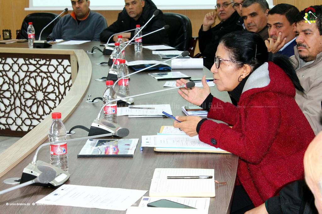 n deux mille dix-neuf et le dix-neuf du mois de décembre à 09 heures, une réunion présidée par le Recteur de l’Université de Biskra, Professeur Ahmed Boutarfaia, qui a eu lieu dans la salle de réunion du rectorat. L’objet de la réunion était la dissémination des appels à participation aux programmes de recherches européens à l’ensemble des enseignants chercheurs. La réunion a été ouverte par le Recteur de l'Université, qui a remercié les enseignants pour leur présence et a présenté la stratégie internationale de l'université de Biskra. Monsieur le Recteur a incité, par la suite, l’ensemble des enseignants chercheurs à faire partie de cette stratégie qui augmentera les chances pour la diversité et la continuité de notre université dans les cadres local, national, régional, et international. Il a ensuite remis la parole au professeur Mahmoud DEBABECHE, vice-recteur en charge des relations extérieures.